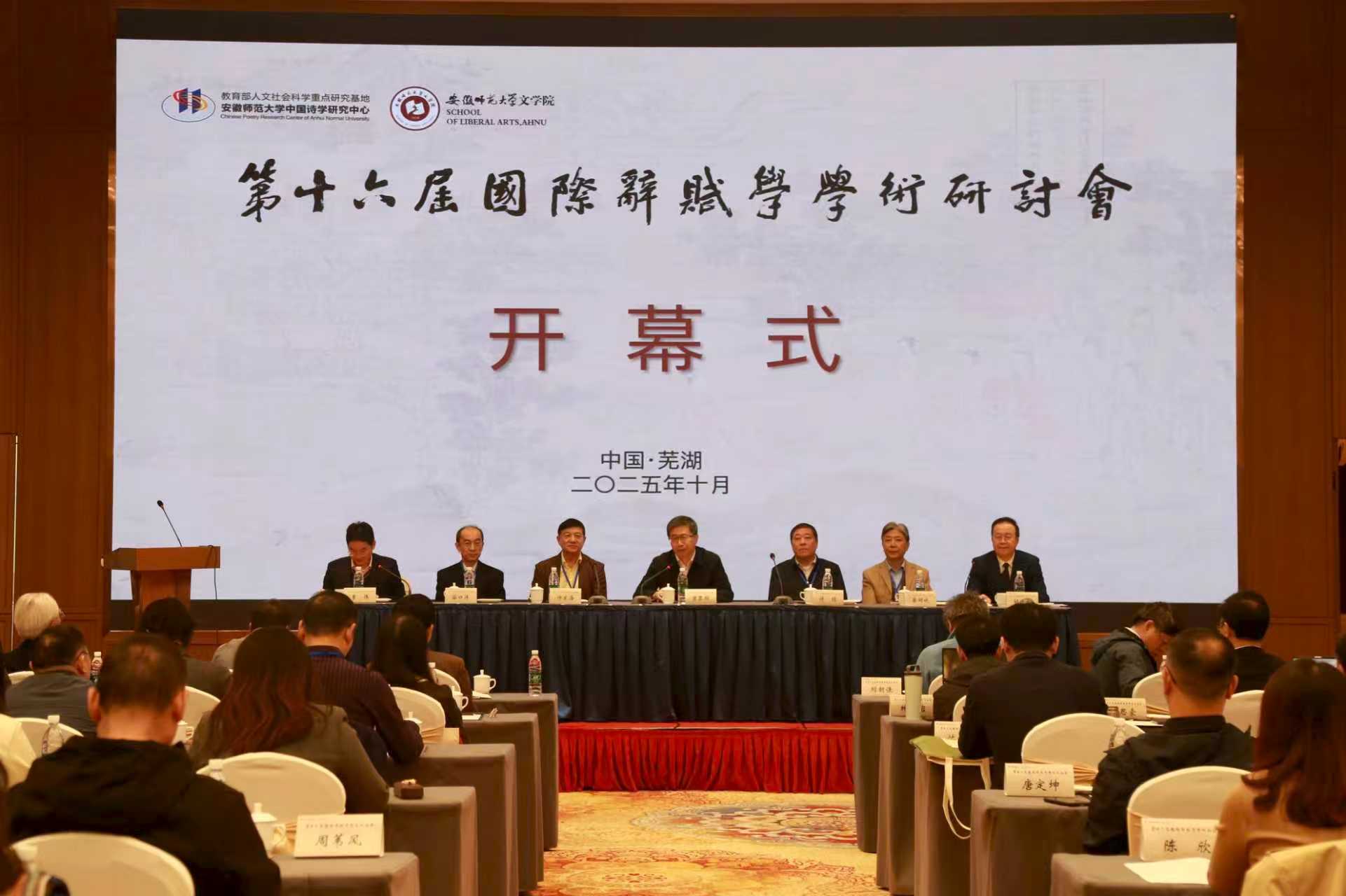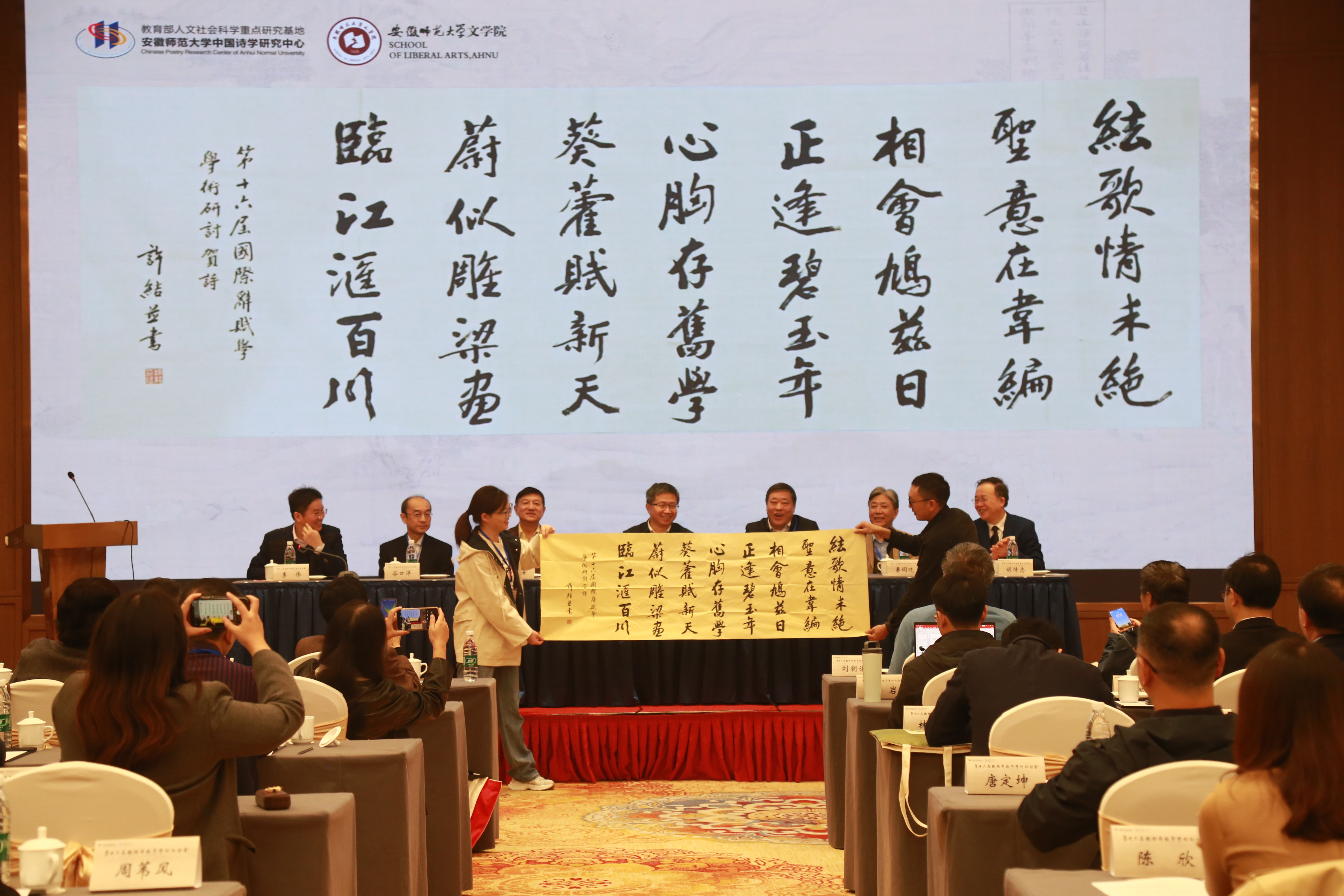 10月24日至26日,第十六届国际辞赋学学术研讨会在安徽芜湖召开。本次会议由中国赋学会主办,安徽师范大学中国诗学研究中心、文学院承办。来自美国肯恩大学、新加坡国立大学、日本东京大学、日本东北大学、日本中京大学、韩国高丽大学、香港浸会大学、澳门大学、台湾政治大学、台湾中国文化大学、北京大学、南京大学、中国社会科学院大学、山东大学、武汉大学、南开大学、吉林大学、湖南大学、上海交通大学、西安交通大学、华中师范大学、陕西师范大学、贵州师范大学、首都师范大学等海内外80余所高校、研究所、出版社、杂志社等学术机构近140位专家学者参加会议。