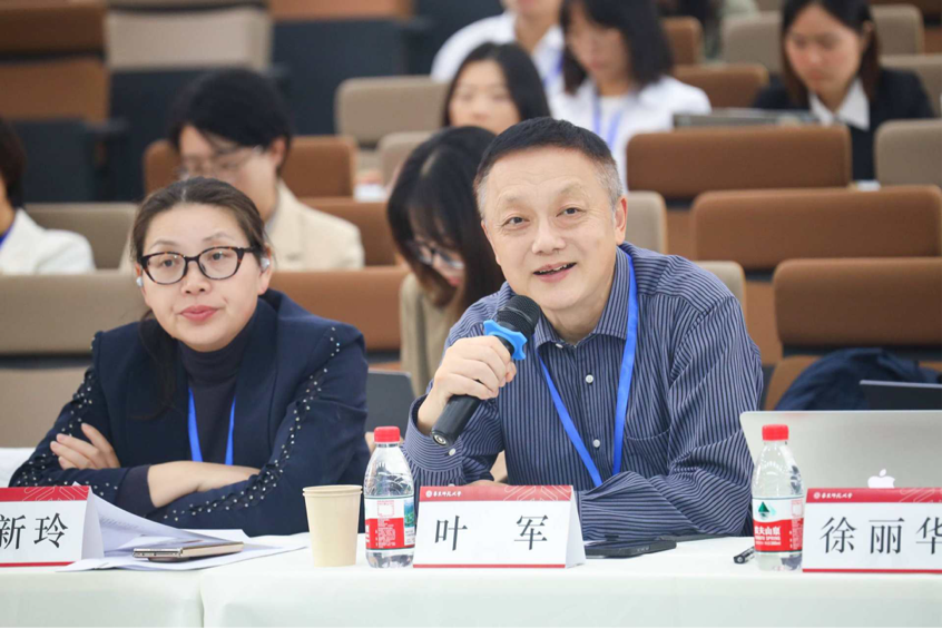 点评环节,华东师范大学叶军教授、南京大学曹贤文教授针对教学方案深度提问。叶军教授探讨体演教学法与交际法、角色扮演法的应用路径,曹贤文教授关注文化词汇螺旋式教学模式,询问如何实现文化词语循序渐进导入与深化。队员结合教学实践详细作答,既展现对教学内容的专业理解,也从与专家的交流中获得新的教学启发。