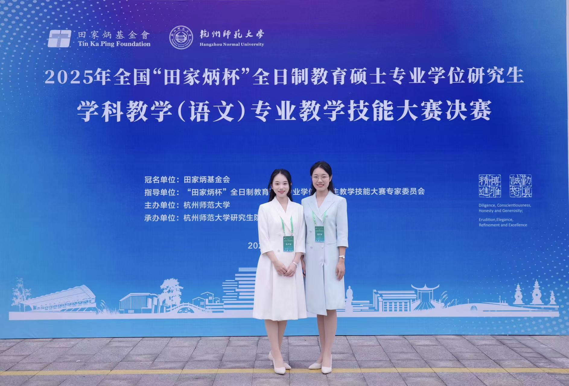 11月7日至9日,2025年全国“田家炳杯”全日制教育硕士专业学位研究生学科教学(语文)专业教学技能大赛决赛在杭州师范大学举办。来自全国128所高校的173名优秀学子入围决赛进行角逐。文学院2024级学科教学(语文)专业赵怡鸽、章蓁蓁在此次比赛中脱颖而出,分别荣获一等奖和三等奖。