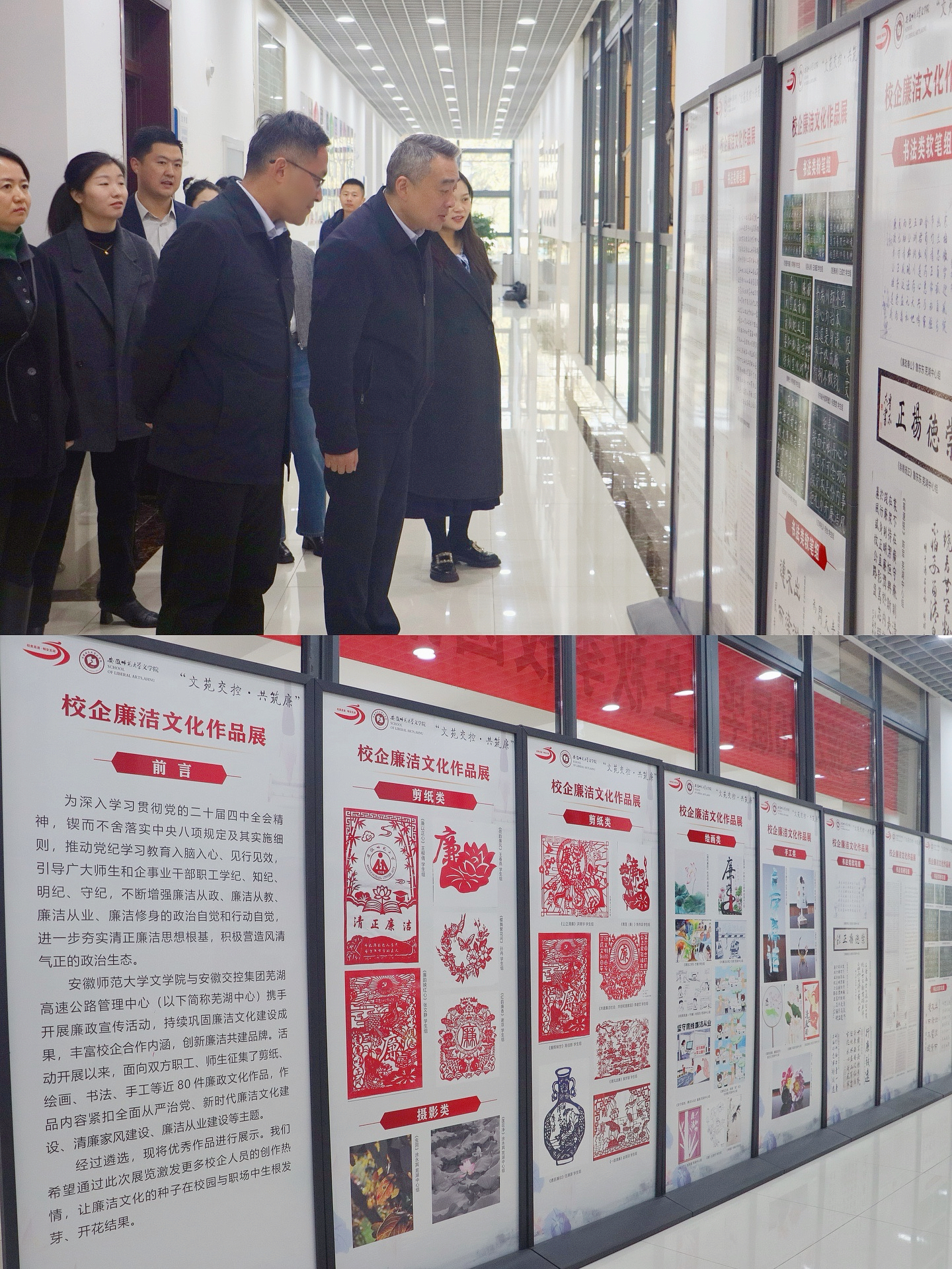 党建引领是此次校企廉洁共建的核心抓手。双方始终将廉洁文化建设作为强化基层党组织政治功能、提升组织力的重要载体,依托文学院人文学科优势与芜湖管理中心国企党建实践经验,共同打造 “廉洁文化作品征集 + 展览” 的沉浸式教育平台。活动期间,共征集师生与企业员工廉洁主题作品80余件,涵盖书法、剪纸、绘画、手工等多种形式,作品以 “崇廉尚洁” 为核心,既展现高校师生对廉洁精神的深刻诠释,也体现国企员工对廉洁从业的坚定追求。