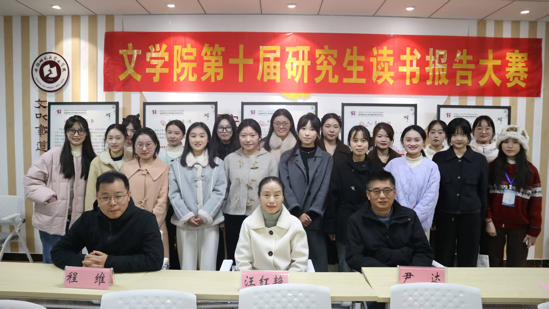 书香漫卷,浸润心田。为激发研究生群体的阅读热情,提升其学术研究与创新思辨能力,营造“以读促研、以研践思”的学术氛围,文学院研究生会于11月27日在文典楼成功举办了第十届读书报告大赛。本次大赛分设专业硕士和学术硕士两个会场,由程维、汪红艳、尹达、刘颖、李婷、邹春秀六位老师担任评委。经过初赛,中国语言文学、学科教学(语文)等多个专业的31名选手齐聚决赛现场,共赴这场书香盛宴。