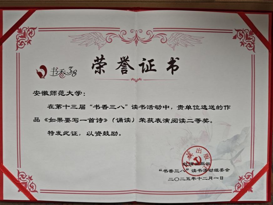 全国“书香三八”读书活动自举办以来,已成为推动全民阅读、提升职工文化素养的重要平台。安徽师范大学文学院女教师在此次活动中取得优异成绩,不仅展现了学校女教师的才情与风采,也为学校乃至安徽省赢得了荣誉。(文学院 办公室)