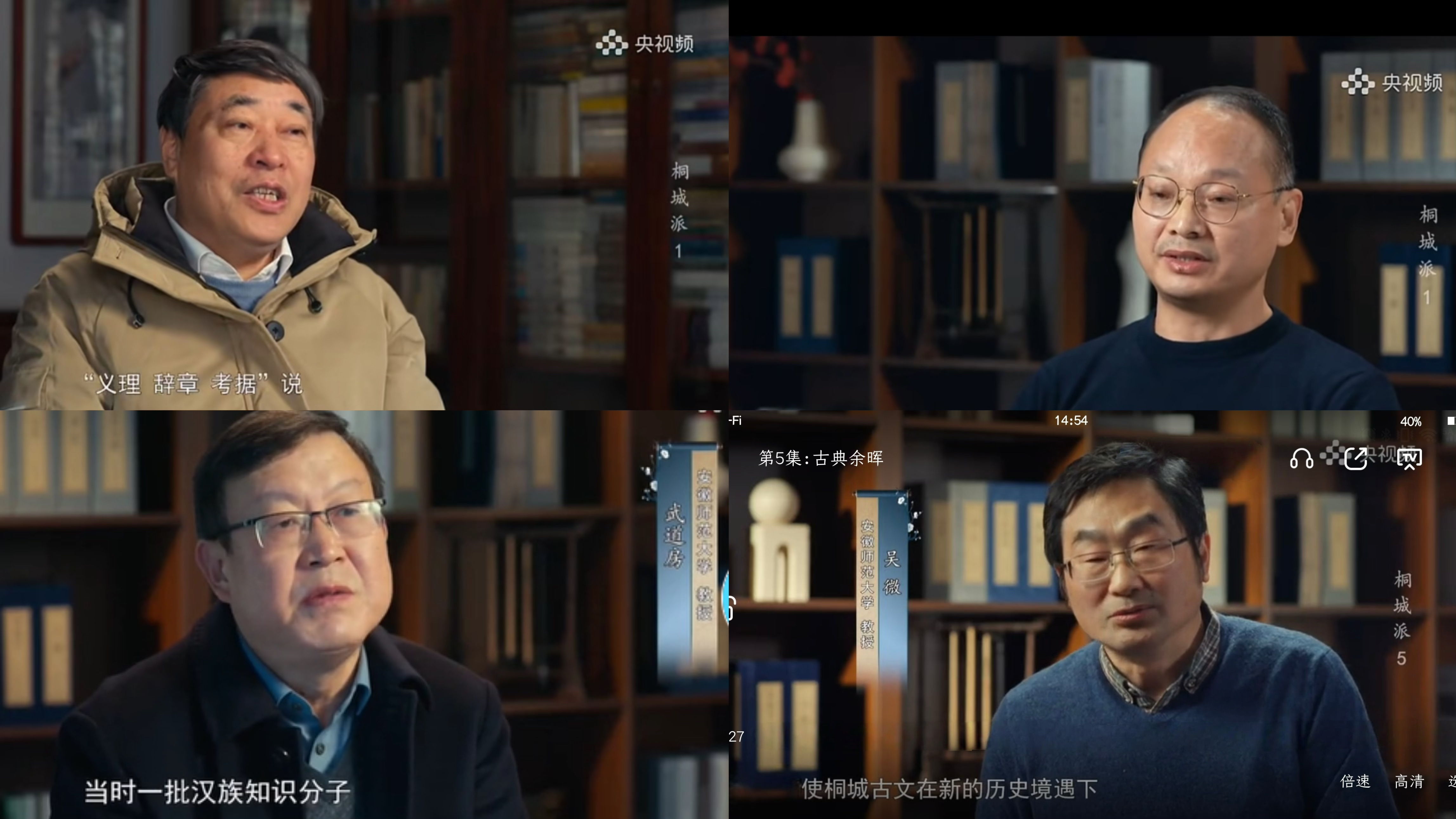 4月3日至7日,大型人文纪录片《桐城派》在央视纪录频道CCTV-9首播,并在安徽卫视同步重播。该片以时间为脉络,首次以影视手段全景呈现了清代文坛最大散文流派——桐城派近三百年的兴衰嬗变与文化传承,历时近五年精心打磨制作完成,兼具学术性与普及性。文学院许结、吴微、武道房、潘务正4位教授应邀参加节目录制,以专业视角解读桐城派文化精髓。文学院地处江淮文化腹地,长期深耕地域文化研究,尤其是一批学者将桐城派研究作为核心研究方向,产出了一系列具有影响力的代表性成果,已然成为国内桐城派研究重镇。在此次纪录片摄制过程中,文学院四位教授围绕自己研究专长,深入浅出地介绍了戴名世、姚鼐等桐城派先贤的人生轨迹、思想脉络与学术主张,巧妙将学术研究的深度转化为电视语言的广度,为观众理解桐城派的文化密码提供了权威而生动的解读,搭建起学术与大众之间的沟通桥梁。