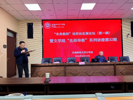 4月10日,安徽师范大学“未来教师”培养与发展论坛(第一期)平行论坛暨文学院“名师导教”系列讲座第32期在文典楼F108报告厅举行。马鞍山二中原校长、正高级教师、特级教师郭惠宇先生应邀作“今天我们如何当好教师”专题讲座。本次讲座由文学院院长项念东教授主持,副院长胡承佼教授、学科教学学位点负责人张晋教授出席活动,2025级学科教学(语文)专业研究生到场参会学习。
