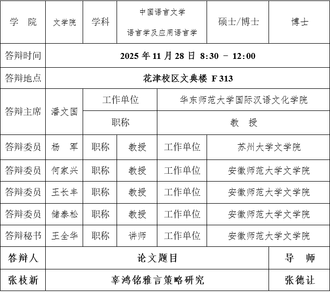 中国语言文学2025届博士研究生学位论文答辩公告(2)