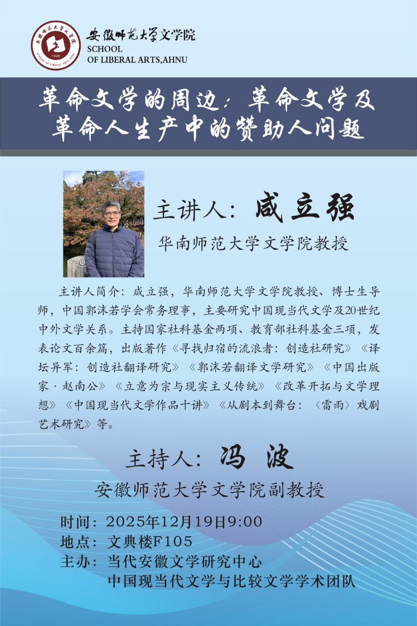 【学术讲座】咸立强:革命文学的周边:革命文学及革命人生产中的赞助人问题