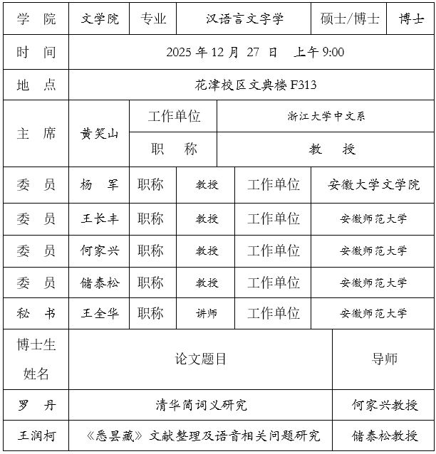 文学院汉语言文字学专业2024级博士研究生学位论文开题公告