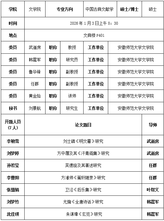 文学院中国古典文献学专业2024级硕士研究生学位论文开题公告