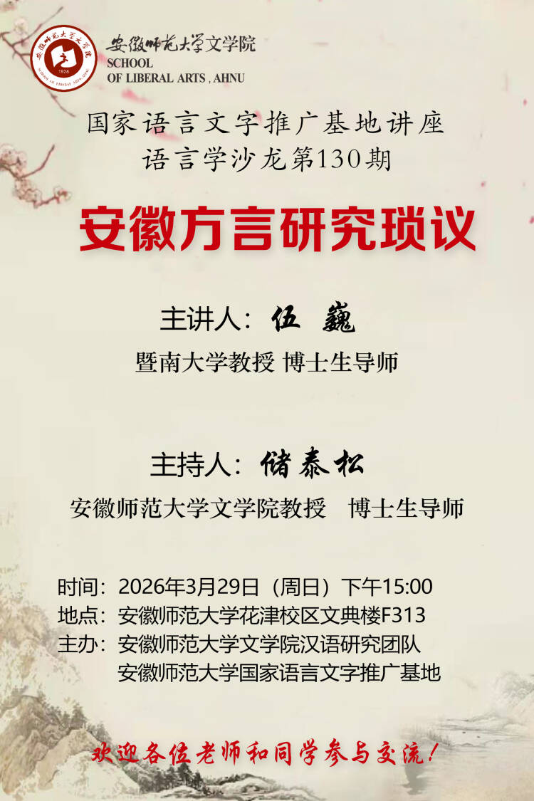 【学术沙龙】伍巍:安徽方言研究锁议