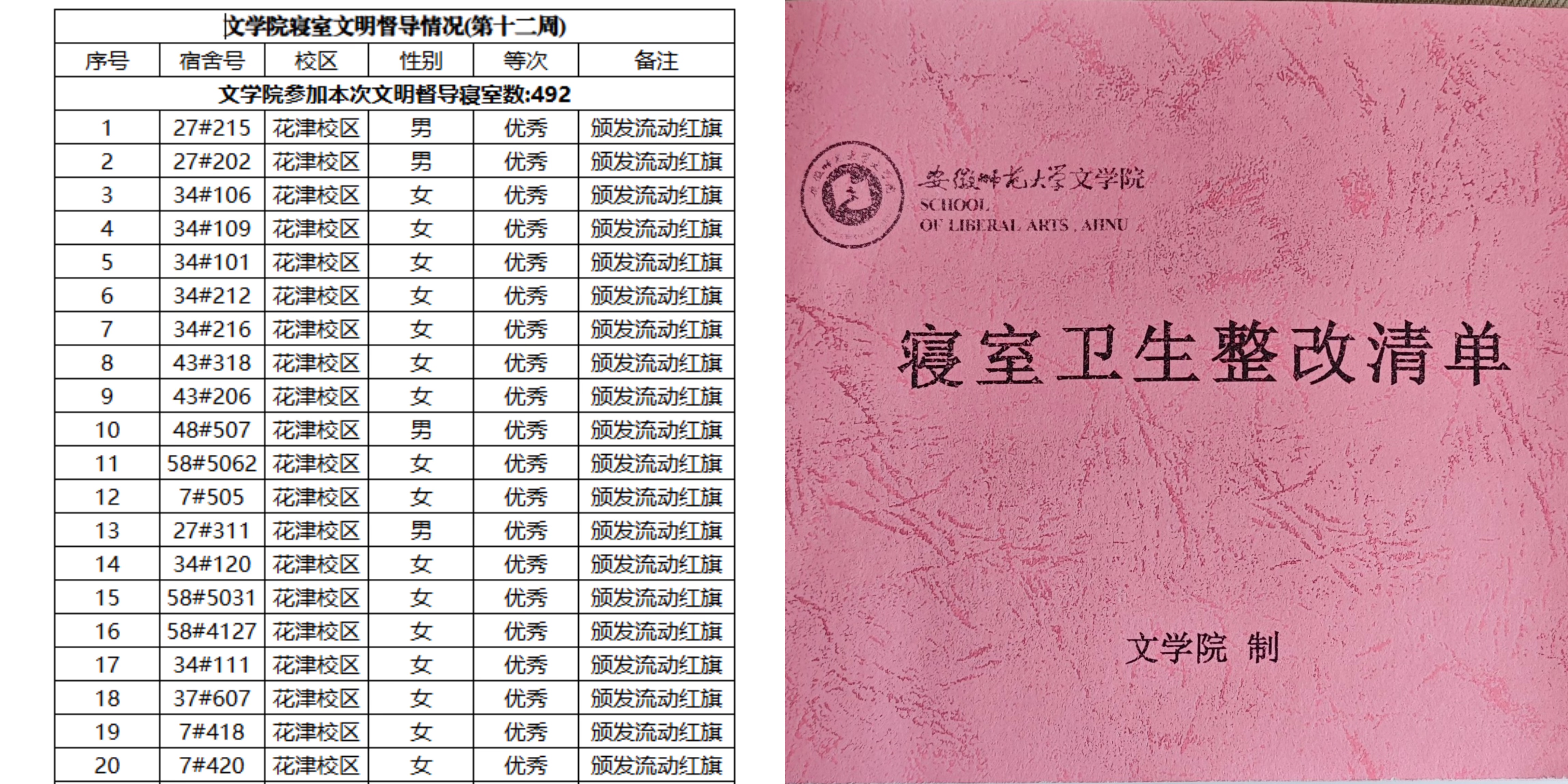 据了解,文学院始终将基础文明建设摆在重要位置,先后召开寝室长大会,推进落实寝室长“三个一”专项工作。本次宿舍评比共检查492间寝室,经过多轮筛选与综合评审,最终评选出夏沁园27号楼202室、215室等20间优秀寝室。学院坚持每周三开展常态化宿舍评比,评比结果均通过学生工作网及时公示。针对表现欠佳的寝室,学院发放整改通知单并实施闭环跟踪检查,确保问题整改到位,营造文明和谐的住宿氛围。