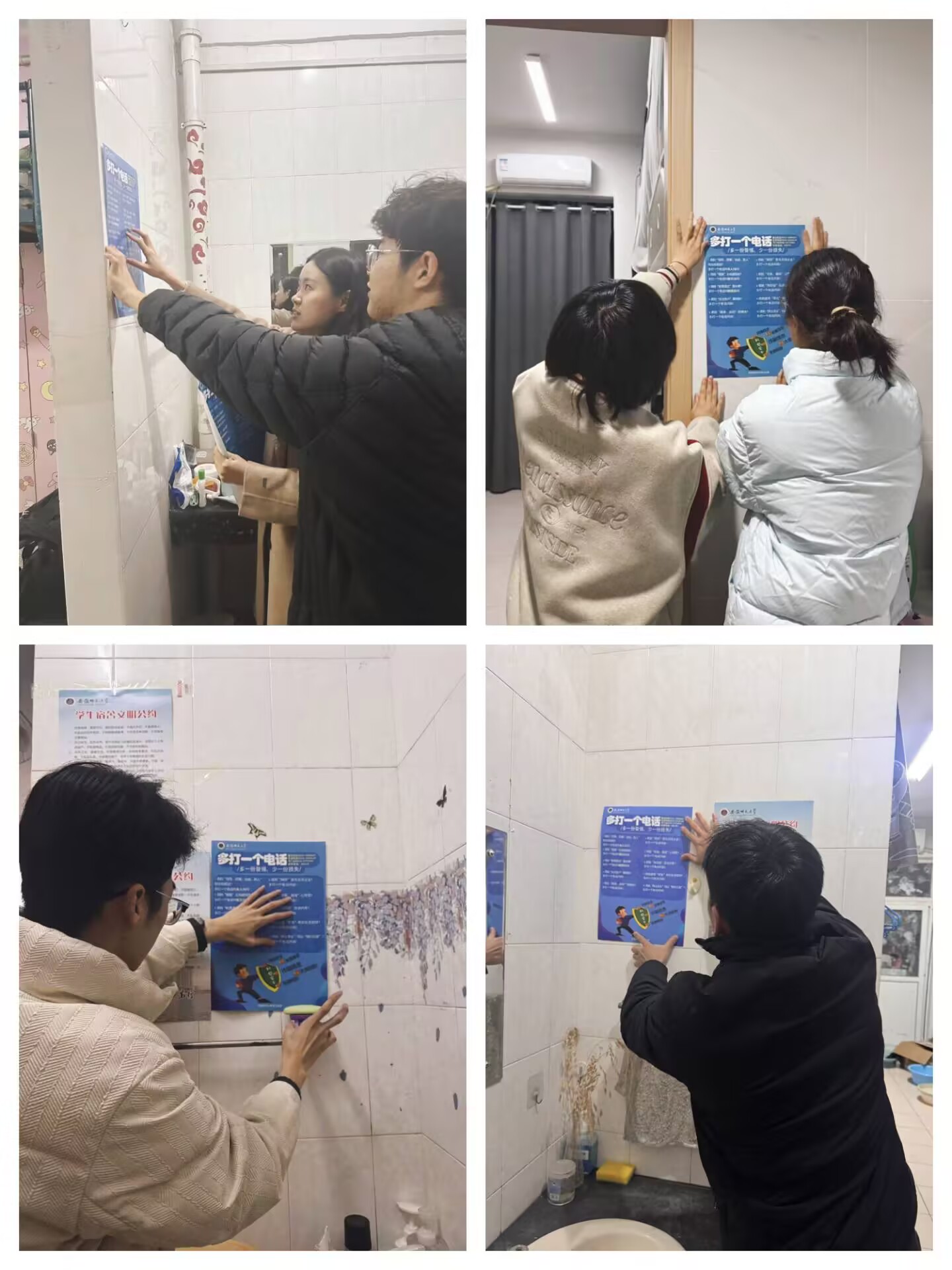融入反诈宣传,守护财产安全。结合当前高校反诈工作形势,本次活动将反诈宣传同步融入检查全过程,筑牢学生财产安全屏障。检查人员到寝室向学生发放并张贴反诈宣传单,围绕“校园贷”“刷单返利”“冒充客服退款”等高发诈骗类型,结合真实案例拆解诈骗分子的作案套路,提醒学生时刻记住“给钱不要,要钱不给”的八字警示词,遇可疑情况第一时间向学校和警方求助。