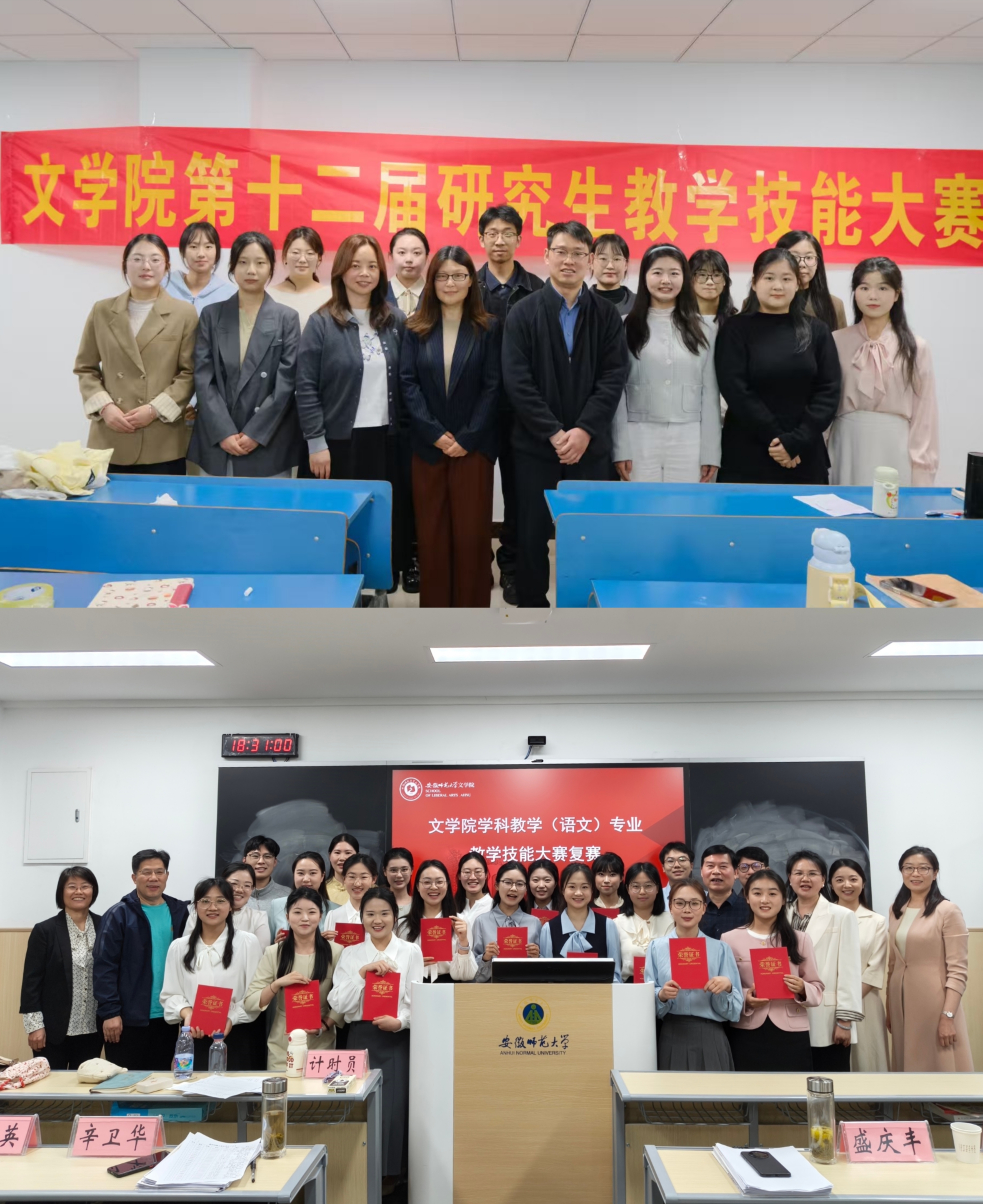 青衿之志终不负,硕果盈枝启新程。此次大赛的成功举办,不仅为研究生学子提供了锻炼教学能力、互相交流学习的机会,更深刻践行了文学院“文以载道,学以化人”的育人理念。期待文学院学子以此为契机,踏实打磨教学基本功,用心深耕语文教育,在今后的学习与从教道路上稳步前行,续写精彩篇章。