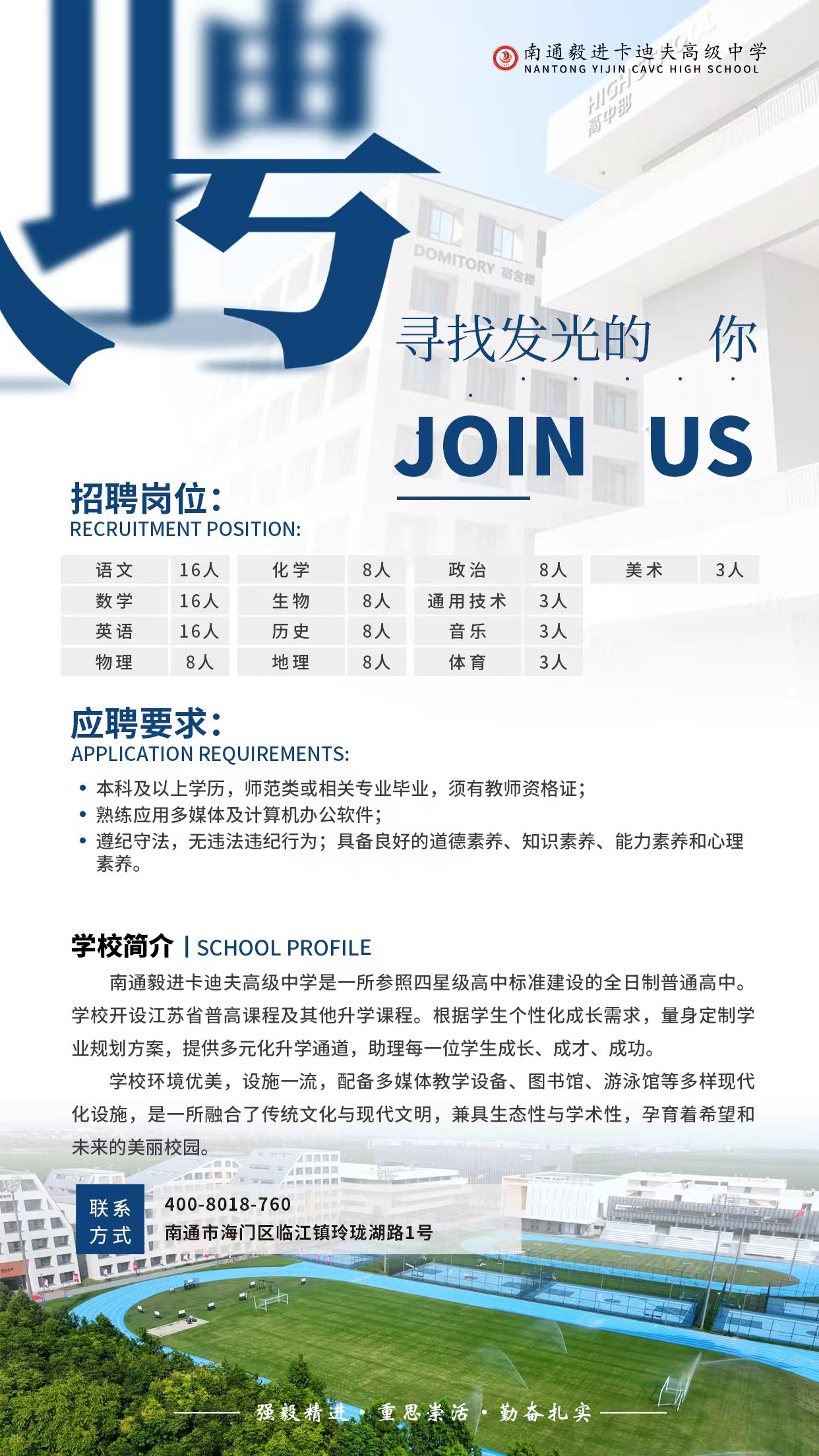 【11月27日线下面试】南通毅进卡迪夫高级中学2026届校园线下面试