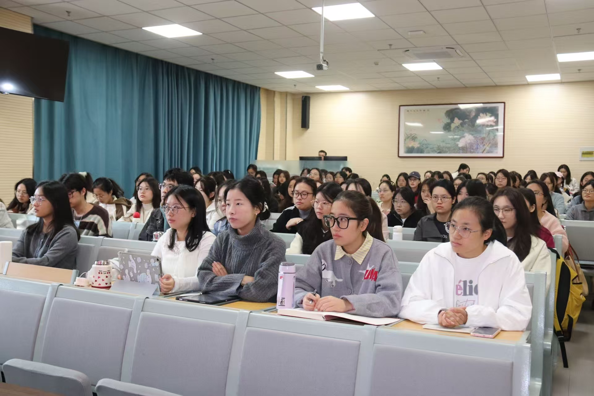严可悦同学做活动总结。她代表全体同学向鲍老师表达了深挚的感谢,她表示讲座不仅涵盖了丰富的理论知识,还融入了生动的实际案例,内容既充实又富有启发性,堪称“干货满满”。参会同学均表示收获显著,认为本场讲座为研究生提供了极具价值的经验借鉴与实践参考,对提升教育认知和教学设计能力具有重要指导意义。(文/邱诗萍,图/疏洋 卓玉杰)